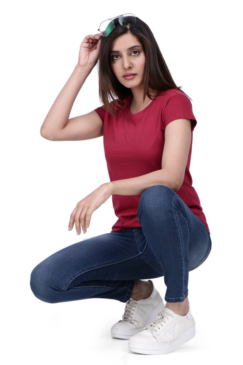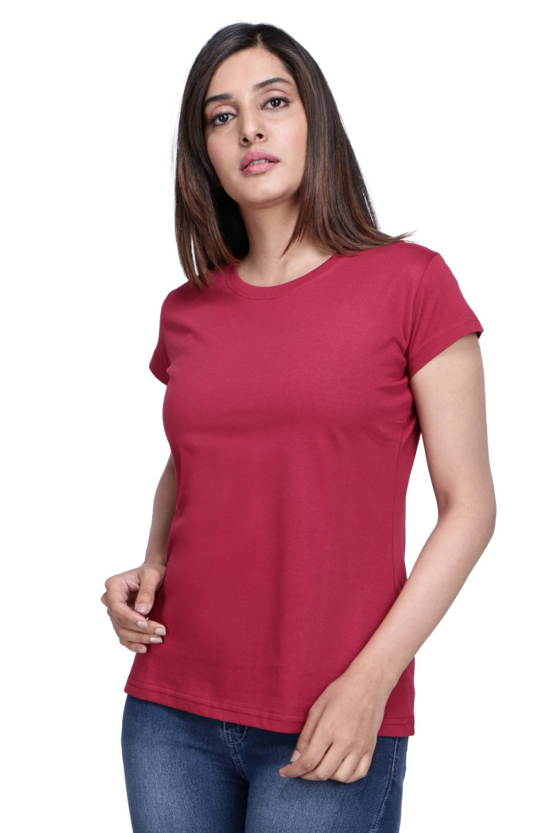Value for money - Maroon Half Sleeve T-Shirt (With Rib)