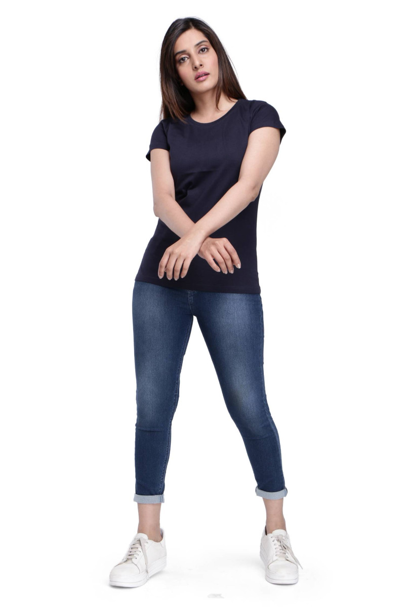 Navy Blue Half Sleeve T-Shirt (With Rib) is worth buying